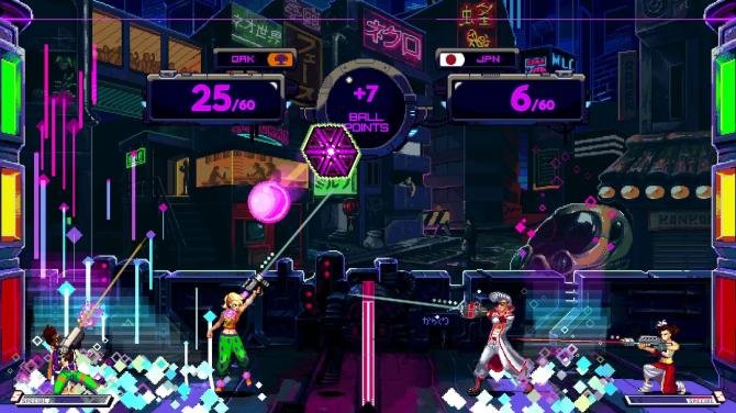 Hyper Gunsport is all about arcade action! Precision shooting and tight jumps! Clutch saves and epic slams! But the ONLY thing you can shoot is the ball!At its core, Hyper Gunsport is a cooperative competitive action game where the object is to shoot the ball into goals of varying difficulty, while the opposing team tries to do the same. Each time the ball crosses the net its point value goes up, so longer volleys mean bigger points and higher stakes. A team is composed of two positions, a keeper and a striker. The keeper doesn't move, but can fire more frequently, and has a wider aiming range and shot radius - they're often used as defense. The striker can move and jump, but can take fewer shots, so they must be precise and must make them count. Will you burn shots and get aggressive, or set up an iron defense instead? The game encourages teamwork and competition by equal measures. Each team also has its own special weapons which unlock with proficient play. These weapons require players to think on their feet and change the shape of the game. Tricky bounces, shots that detonate, different strategies abound. Each arena is unique as well, with its own gimmicks, from goals that open and close or change point values, to moving nets, to unstable footing. If you've played games like Windjammers, Sportsfriends, IDARB, or Towerfall, you'll be in familiar territory.Ultimately, Hyper Gunsport rewards precision shooting for the hardcore minded, but is also friendly to new players who just want to have a good time. The depth is there if you want it! Teams People's Republic of OaklandThis team is new to the game and has a lot to prove. Special attacks include a short range spherical blast that hangs in the air, and a shot that can bounce once before impact. Neo TokyoA venerable team with custom-made weapons. Their special attacks include a chargeable buster shot and an extended shotgun blast. New Republic of CongoLords of the court. Special attacks include a custom yo-yo that hits the ball coming and going, and an assault rifle. United Worker's Socialist DemocracySuper cybernetically enhanced team from the eastern bloc. Specials include a long laser for angled shots, and cannon fire that keeps pushing on impact. Blue CambodiaThe oldest team on the pitch, who use no cybernetics. Their specials include a double arced arrow shot and an independent detonation mortar. Scrapyard SquadThey sneaked in here on faked credentials with questionable weapons. Specials include a laser bat attack and a chain that extends the length of the field. Practicebots AllianceRecently gained sentience. Can use the specials of any other team, but at random! You never know what you'll get. Features Circuit mode: an 8-round tournament against teams from around the globe, with a short story for each of the 7 teams. Playable in local co-op or single player with an AI partner. Versus mode: 4 player 2v2 or 1v1 local competitive play. AI tournament: let the AI battle itself, wind it up and watch it go. 7 arenas with unique gimmicks and rulesets that change how the game is played (Note: Hyper Gunsport is the sequel to the original Gunsport in the sense that Super Street Fighter II Turbo is the sequel to Street Fighter II.)