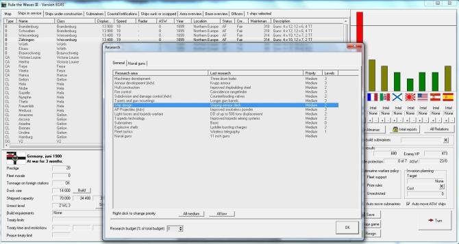 Build Your Navy, from pre-Dreadnoughts to Aircraft Carriers and Missile Cruisers!Rule the Waves III is a simulation of naval ship design and construction, fleet management and naval warfare from 1890 to 1970.It will place you in the role of 'Grand Admiral' of a navy from the time when steam and iron dominated warship design up to the missile age.Rule the Waves III will let you design and build the ships of your navy, and lead them into battle when war erupts. You will guide your navy's deployment, construction and operations during a period of great technological innovation and political tensions. While the game derives much of its technology and events from 'actual' history, you will find that you forge your own new history each and every time you play! Features Campaigns start in either 1890, 1900, 1920 or 1935 and can run through 1970. Monthly strategic turns with Battles resolved in a realistic tactical naval battle resolution system. Manage your naval budget, and deal with interfering Kaisers, presidents or navy ministers as well as a variety of historical events including naval treaties. Realistic design of ships ranging from corvettes to battleships and aircraft carriers. Research and technical development will determine ship design and tactics. Espionage will keep you up to date on the progress of competing navies Submarines, airships, aircraft and missiles will all appear and change the naval balance of power. Build, train, maintain and fight with your own 'ideal' navy. Construct coastal fortifications, airbases and other defenses Play as USA, Great Britain, Germany, France, Russia, Italy, Japan, Spain, Austria-Hungary, or China.